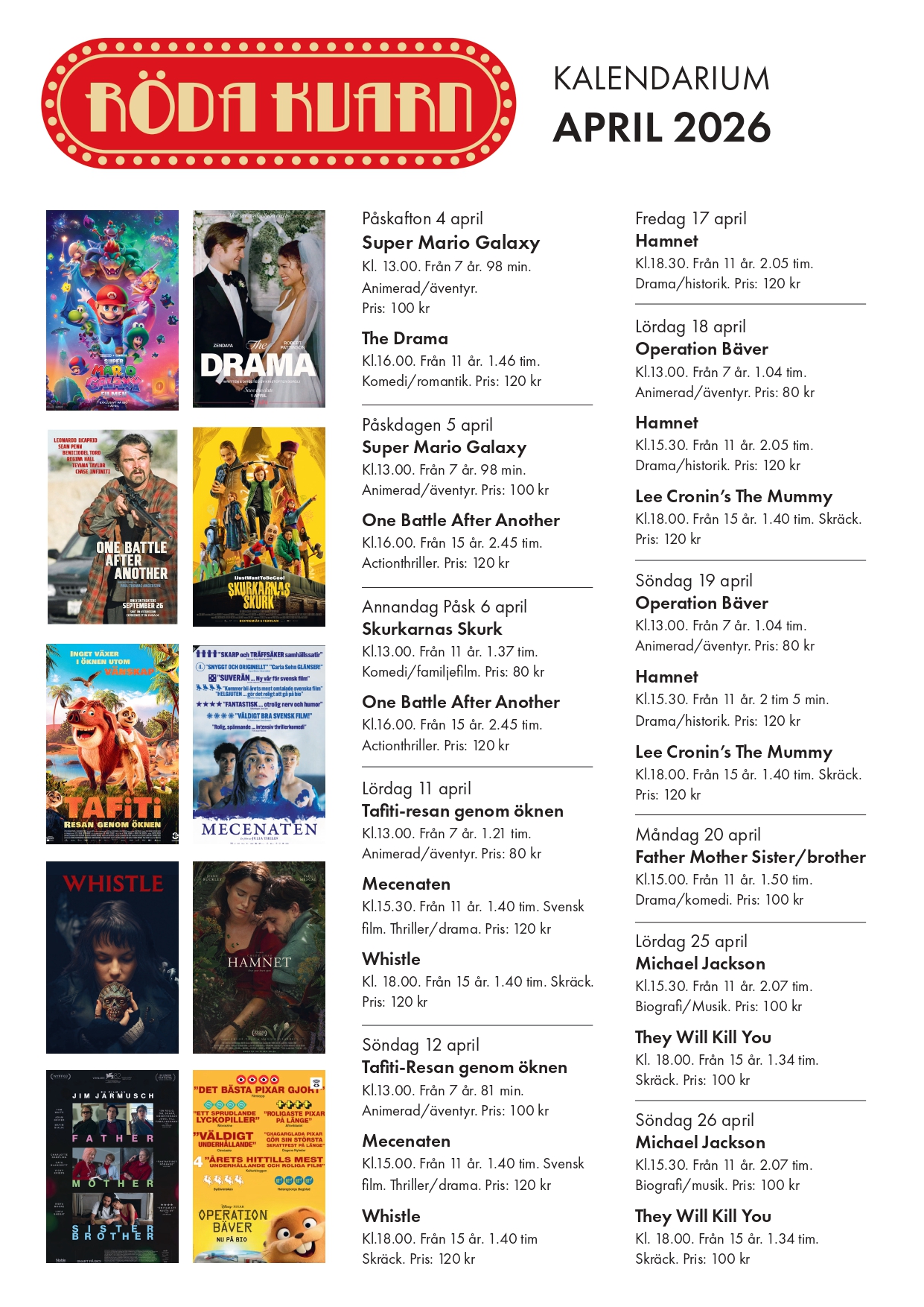 Här hittar du information om aktuella biofilmer och när du kan se dem hos oss.